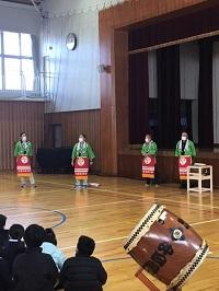 というねらいで、白尾の区長さんをはじめ、3人の方に来ていただき「祭り囃子」を生で体験しました。