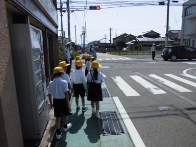 警察官の方々やかほく市安全推進隊の方々に安全な道路の歩き方、渡り方などの指導を受け、実際に道路を歩きました。今日習ったことを生かして、明日からも安全に登下校しましょう。