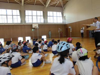 1年生の交通安全教室に引き続き、4年生の自転車教室が行われました。