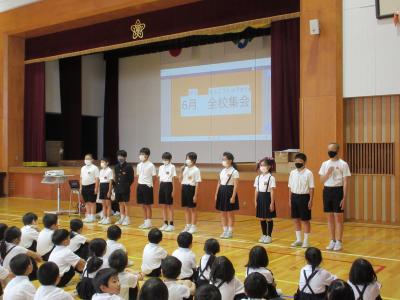 元気な声で校歌を歌い、話をしっかり聞くことができました。