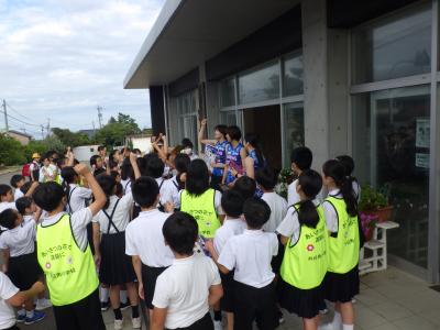 最後に3選手とジャンケン大会をしてあいさつ運動は終了しました。