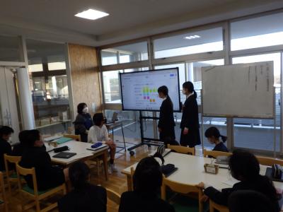昨年度、外日角小を卒業した2名の河北台中1年生が来校し、中学校生活について説明をしてくれました。