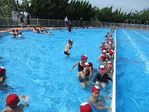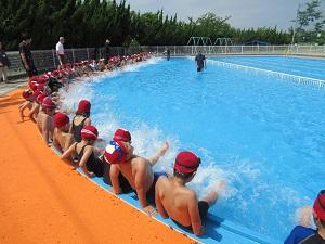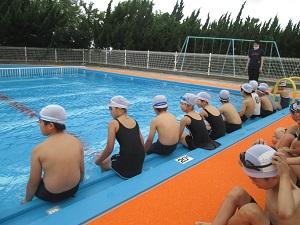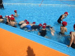 バディーを組んで、水泳学習を行いました。もぐる・浮く・けのび・ばた足・クロールなどの練習をしました。これからも安全に気をつけて水泳学習に取り組んでいきます。