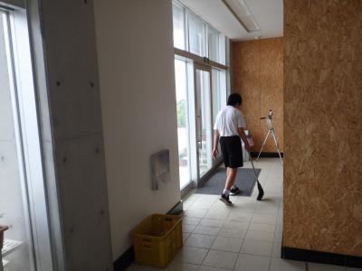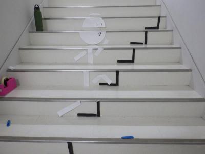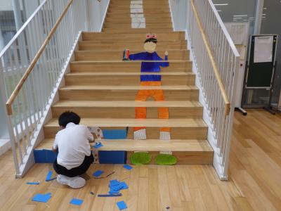6年生が図工の学習で、校内の階段を活用して作品を作っていました。