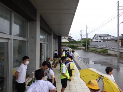 企画委員会のあいさつ運動、整美委員会の玄関掃除、環境委員会の花の水やり、どの委員会も朝からがんばっています。