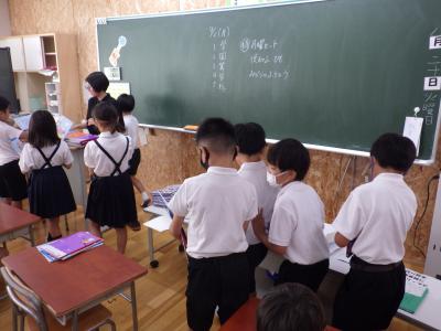 教室では、夏休みの宿題を提出したり、図書の返却をしたり、平和について考えたりしていました。