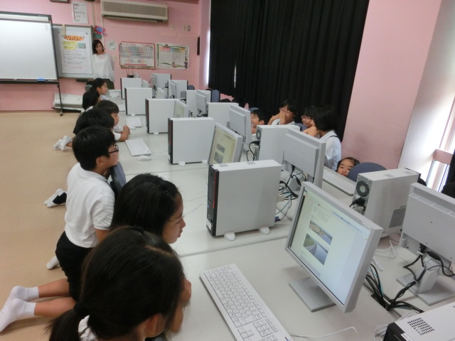 髭さんは学校のHPを使って白尾の浜の事を緊張しながらも淡々と語っていました。