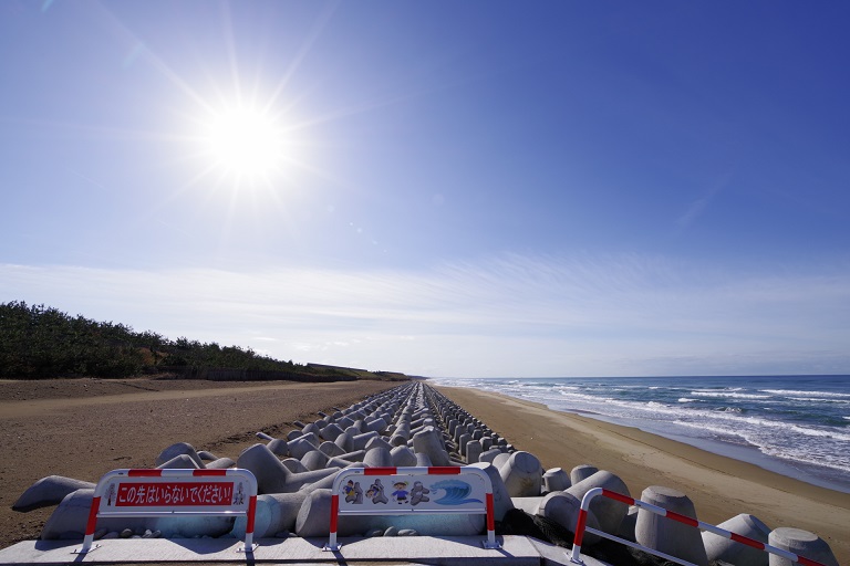 先月まで工事中だった白尾海岸。