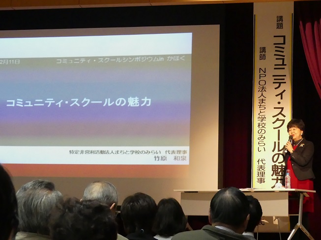 次に、コミュニティ・スクールの魅力について竹原さんに講演して頂きました。