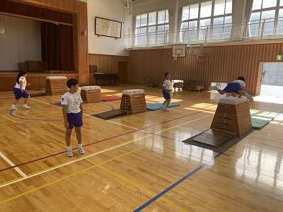 来週の器械運動交歓会に向けて5年生が助っ人に来てくれました。