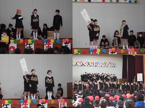 日常ではあまり使うことのない単語もありましたが,毎日練習をして一生懸命に覚えることができました。自分達の力で劇を成し遂げたことで自信がついたと思います。