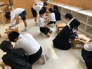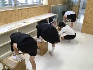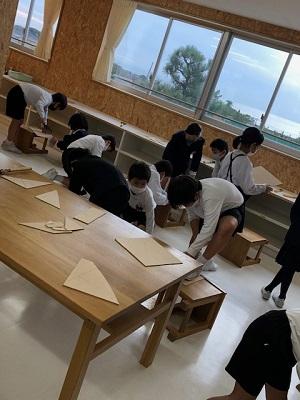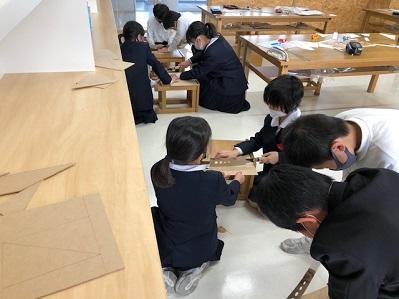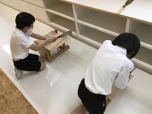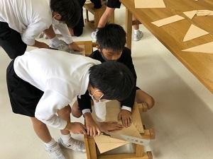 安全に持ち運ぶにはどうすればいいか、まっすぐに刃を入れるにはどうすればいいのか、一生懸命考えながら行っていました。大工さんたちは頑張っていました!