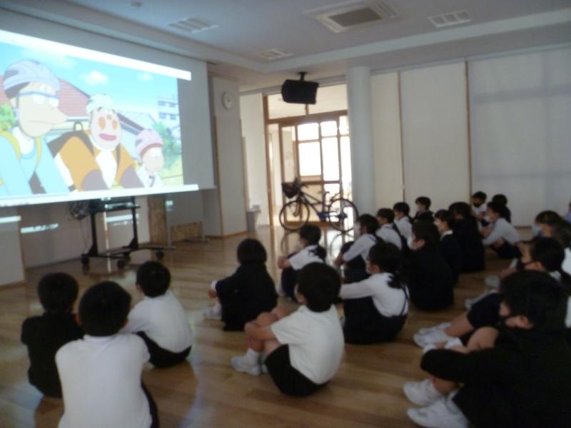 5月12日、自転車の乗り方について学習しました。DVDを見たり、実際に自転車を使ったりしながら、守るべき交通ルールや乗り方の注意点を考えました。「横断歩道は自転車をおして歩くことは初めて知ったよ」「2,3人で広がらないように気をつけよう」一人一人が、どんなことを気をつけるのか考えることができたと思います。お家の方からも、安全に乗るために守るべきことを、くり返しお話ししていただければありがたいです。