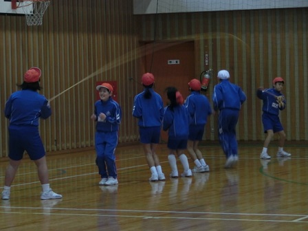 5年生の体育の授業、長なわ集会に向け一生懸命練習していました。