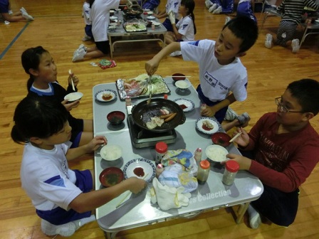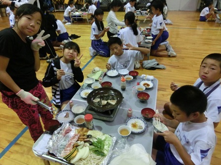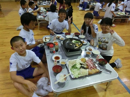 夕食は陶板焼き とても手際がよく、どのチームのおいしく頂いていました!