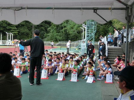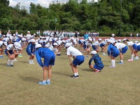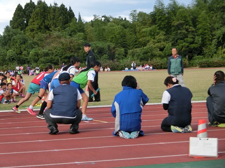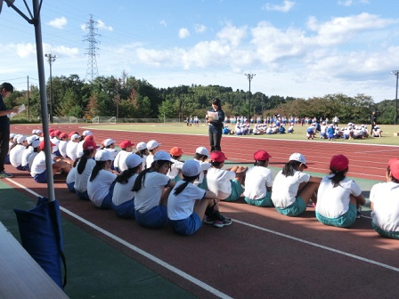 昨日の午後、うのけ総合公園陸上競技場で、かほく市小学生体育大会が行われました。かほく市の小学6年生322人が集い、全員種目の100m走、選択種目から一つ(800m、ロケットボール投げ、走り高跳び、走り幅跳び)と各校代表によるリレーを行いました。