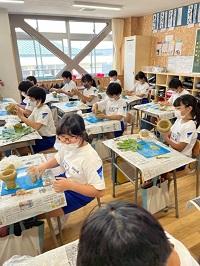 今日は、スポーツ文化課の方が講師となって、6年生が弥生土器づくり体験をしました。