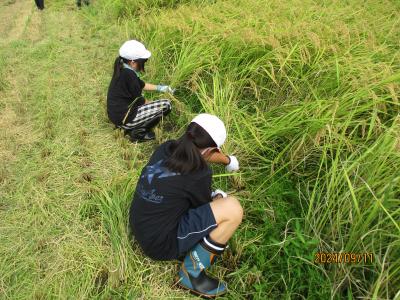 子どもたちは一生懸命に稲を刈り,とても楽しそうでした。