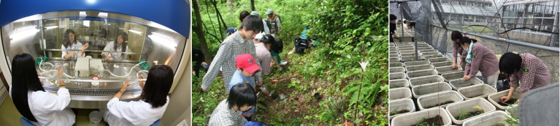 野菜や草花の栽培とバイオテクノロジーについて学びます。バイオテクノロジーとは、生物の持つすばらしい働きを上手に利用し、人間の生活に役立たせる技術です。医療や工業をはじめ、農業分野では貴重な生物資源の保存や品種改良のために活用されています。