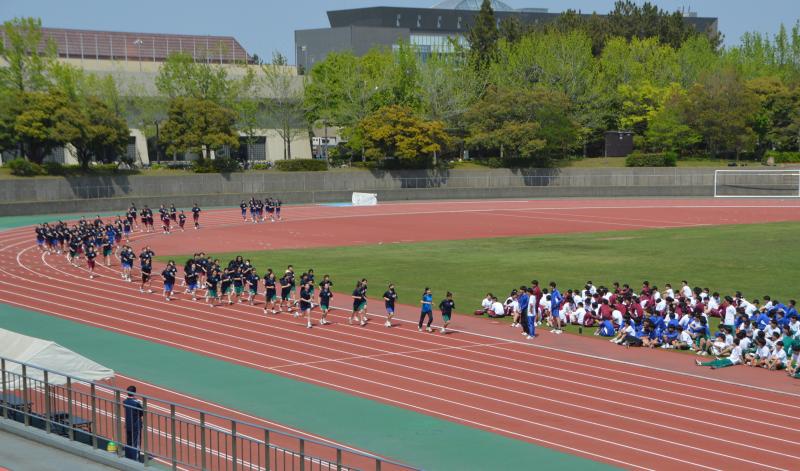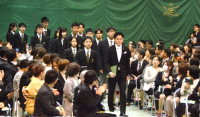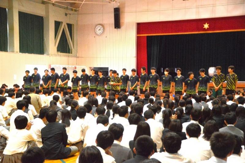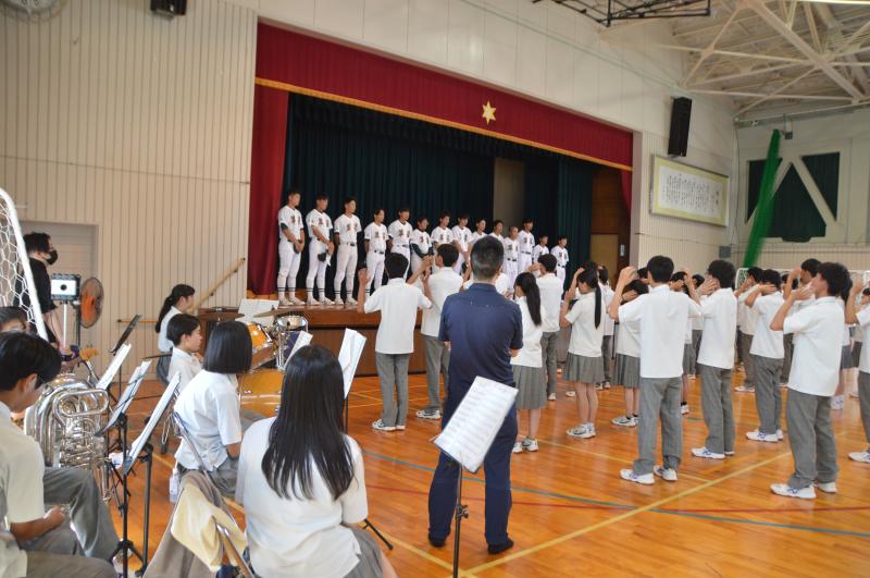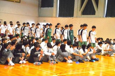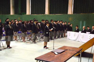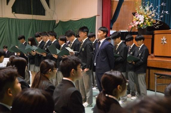 運動部有志合唱隊による校歌紹介、閉式の辞の後、