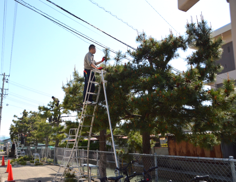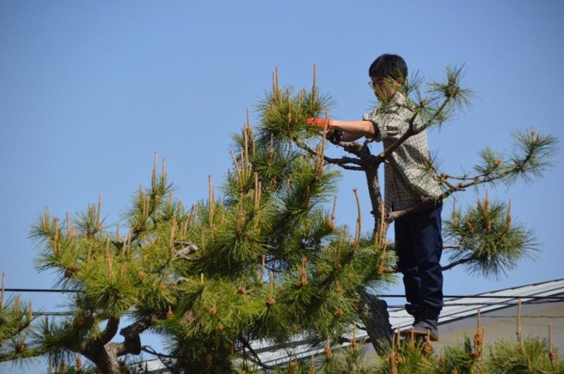 環境科学コース造園分野の生徒は、松の木の剪定を行っていました。