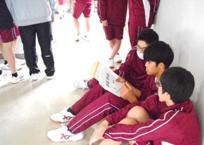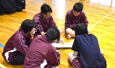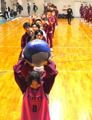 1年次生は、体育館でボールを使ったゲームなどをクラス対抗で行った後、