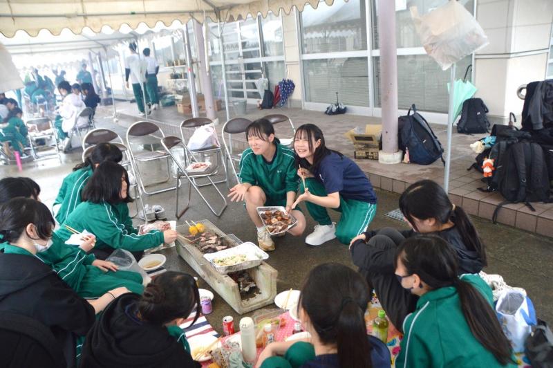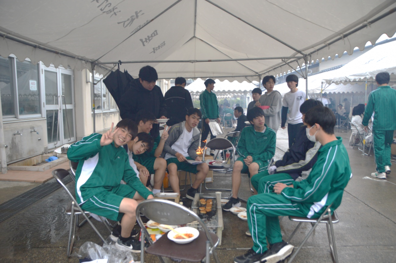 3年次生は、生産実習棟の横にテントを張り、バーベキューを行いました。