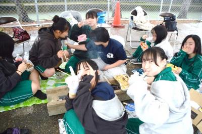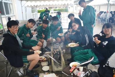 肉や焼きおにぎり、フランクフルト、焼きそば、焼き鳥、特大マシュマロ、お好み焼き、ペッパーライスなど、それぞれの班で個性的なメニューも多く、 とても楽しそうでした。