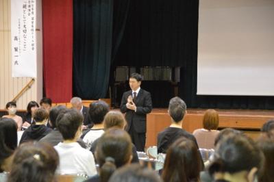 午後は、本校スクールカウンセラー髙 賢一先生の記念講演会がありました。「親として大切なこと」という演題で、事例をあげて丁寧にアドバイスしてくださり、たいへん勉強になりました。