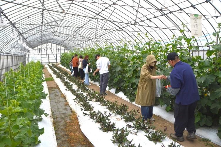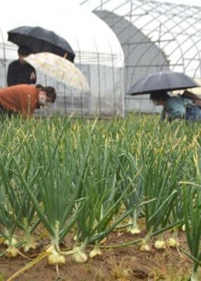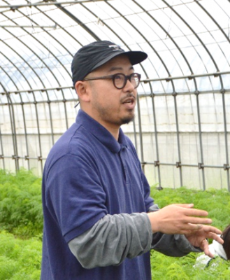 野菜の収穫は川端伸教諭が教えてくださいました。