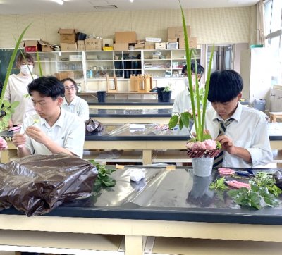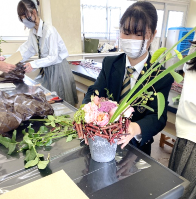 今後も生物資源コースの2年生の生徒は順番に金曜日の5,6限の授業で1人2回フラワーアレンジメントをしていく予定です。