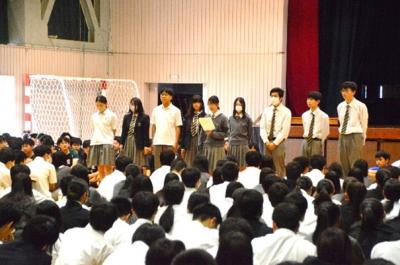 表彰式には、JRC部を代表して、3年生の佐野優空さん、2年で部長の高橋龍生さんが表彰を受けました。