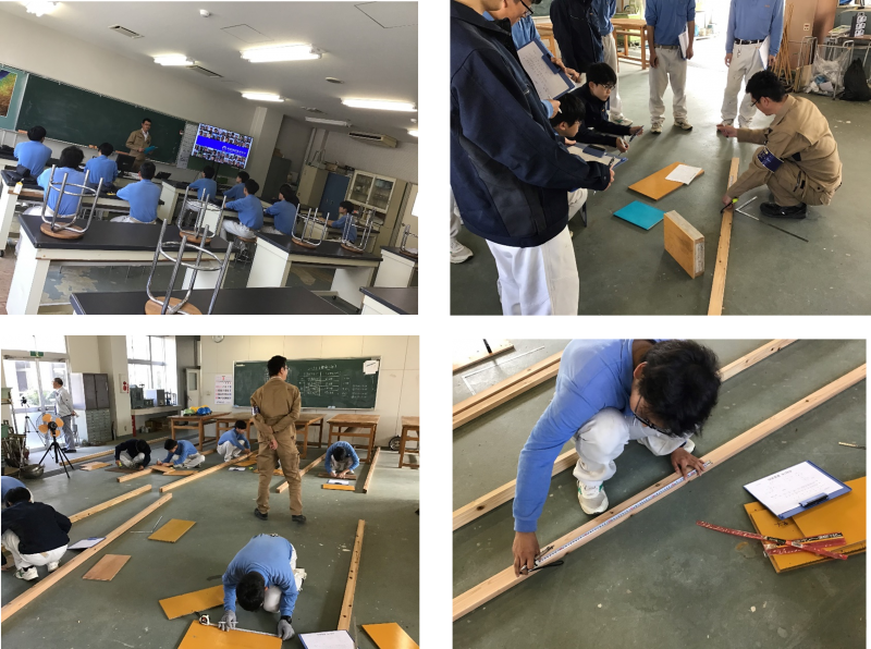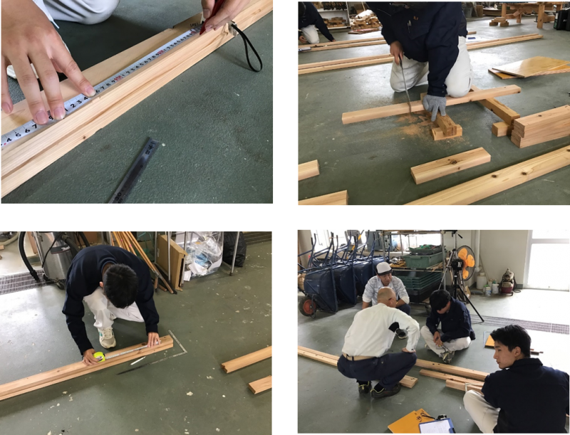 6限目は、実際に施工実習室で型枠縮尺図を参考にしながら、型枠に使用する木材に墨付けを施しました。マイスター実技指導1日目はこれで終わりました。次回が楽しみです。