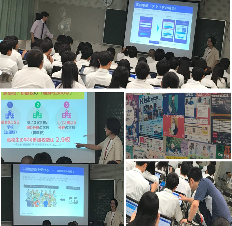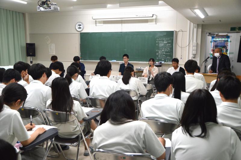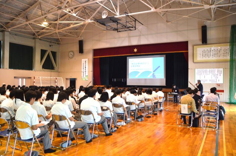 就職を希望する生徒たちは、自分が選択した業種業界に関する特色や働きがい、職場環境等について真摯な姿勢で耳を傾けていました。また、進学希望の生徒たちも、上級学校での研究分野や今夏のオープンキャンパス情報、卒業後の就職先など、聞き漏らさぬように真剣に聞き入っていました。次年度に控える進路決定に向け、着実に動き始める有意義な経験となりました。