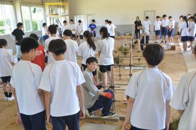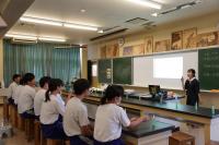 5限目は、建設業の仕事内容について、ものづくりマイスターである柳昌建設の阿部社長さんに説明していただきました。