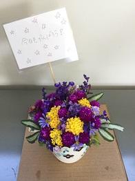さて、園芸福祉コースの生徒が2回目のアレンジメントを作りましたので、ご紹介します。