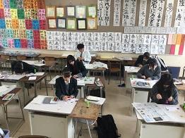 2年次生の選択授業「工芸Ⅰ」を受講している生徒に 上絵の技法を指導してくださいました。