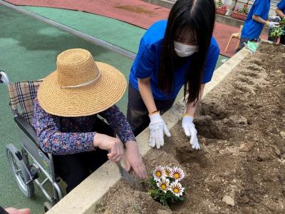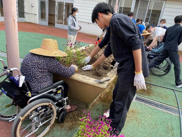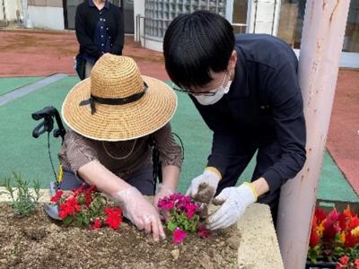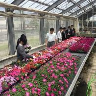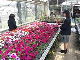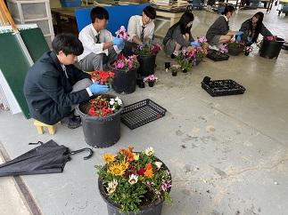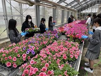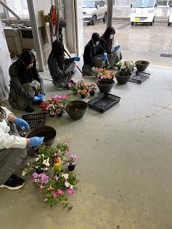 高校生と農作業をしながら、翠星高校生のこと、学校生活のこと、たくさん話を聞くことができました。温室でお花の寄せ植えも体験しました。