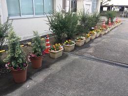 PTAが毎朝、生徒玄関前で朝の挨拶の声掛けなどを行っています。