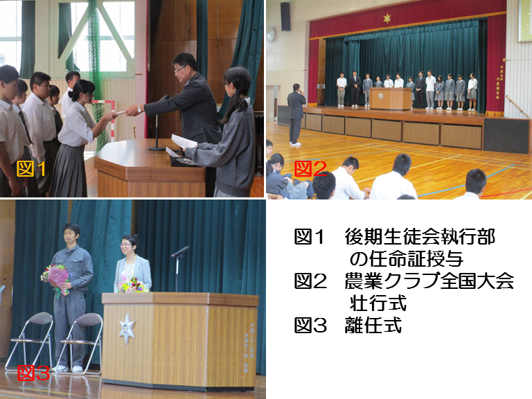 後期生徒会任命式、農業クラブ全国大会壮行式がありました。