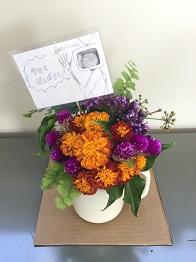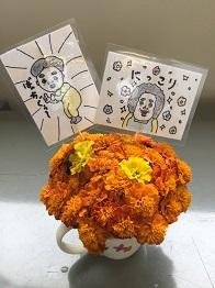 このため、花材が少なく「マリーゴールド」を中心とした似たような作品となってしまいました。