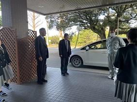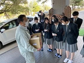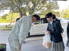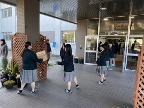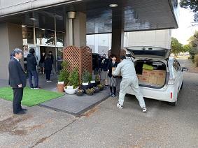 卒業式閉会後、保護者の皆様には生徒たちが育てた鉢花(サイネリア)を持ち帰っていただきました。