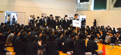 4月16日(火)のロングホーム(LH)の時間に、本校スクールカウンセラーの高 賢一先生による「1年生人間関係づくり講座」が行われました。1年生全員が第1体育館に集まり、言語を使わないノンバーバルコミュニケーションによるアサーション(自己主張)で「バースデーライン」を行い、最後は拍手でクラスの親睦を深めました。