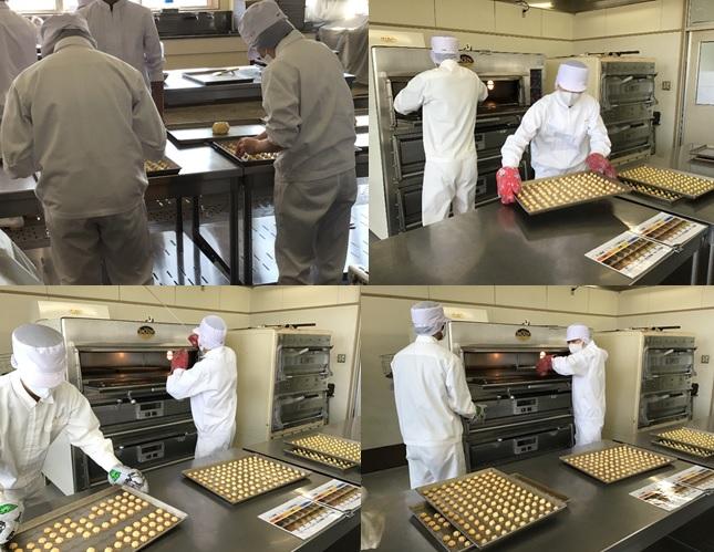 食品科学棟では、来週の収穫祭に備えて、いちごジャムとクッキーの製造実習を行っていました。いちごジャムは、食感を楽しめるプレザーブスタイルです。