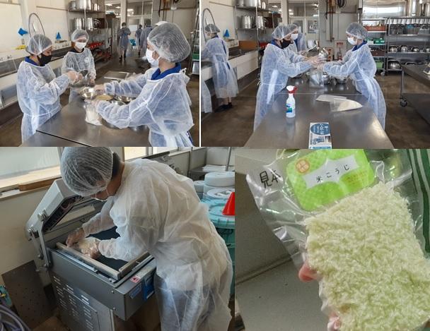 今日は、農学分野の3年生がアグリビジネス(食品流通)の授業で、「米糀」の包装実習を行いました。