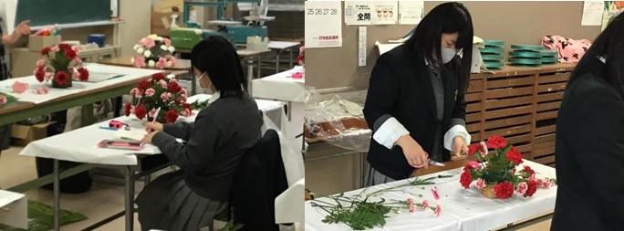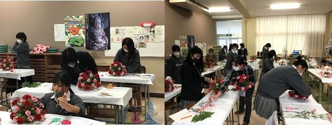 園芸福祉分野では、フラワーアレンジメントの専門家の方々を招き、講習会が開かれました。