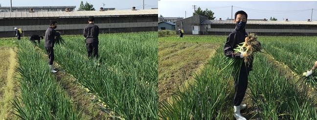 農学分野2年生の総合実習では、玉ねぎの収穫・調整作業で大忙し、