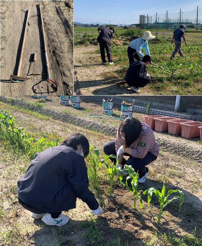 総合実習後の農業実践演習では、農場の除草作業を行いました。