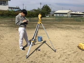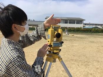 グランドでは、環境設計分野の生徒が測量実習を行っていました。