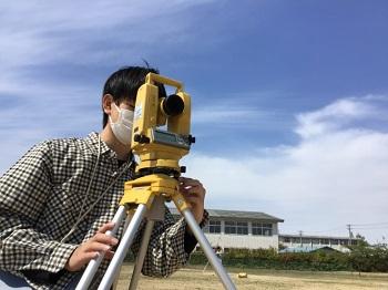 < 環境科学コース(環境設計分野) 「角測量」の様子>